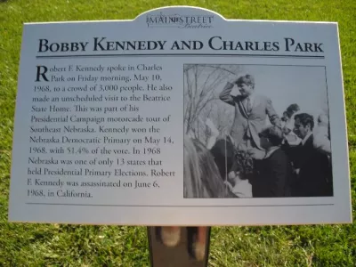 Charles Park was created as the first public park in Beatrice in 1914. In 1999, Main Street Beatrice developed a streetscape plan to coordinate historically appropriate streetscape design and unification of the downtown district. This plan included enhancements to Charles Park. Restoration of the park began in late 2008 and was completed in the first part of 2010. The historic Carnegie Building sits adjacent to Charles Park. Charles Park is once again a beautiful landmark the public can enjoy. It's the perfect place to spend the day for a family picnic, flying a kite, or reading a book.